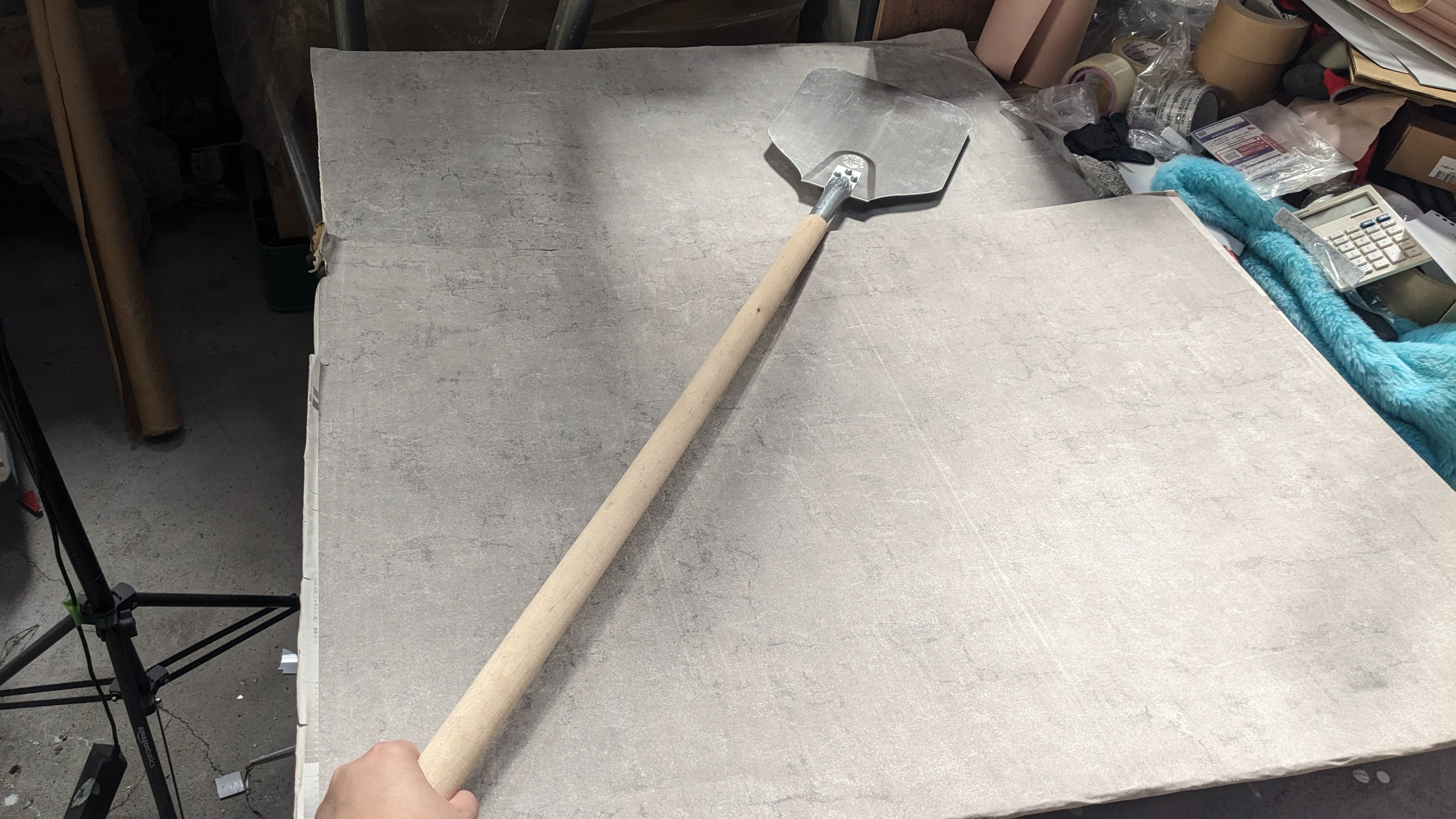 大き目のピザ生地の時でも十分なサイズのピールです。